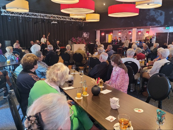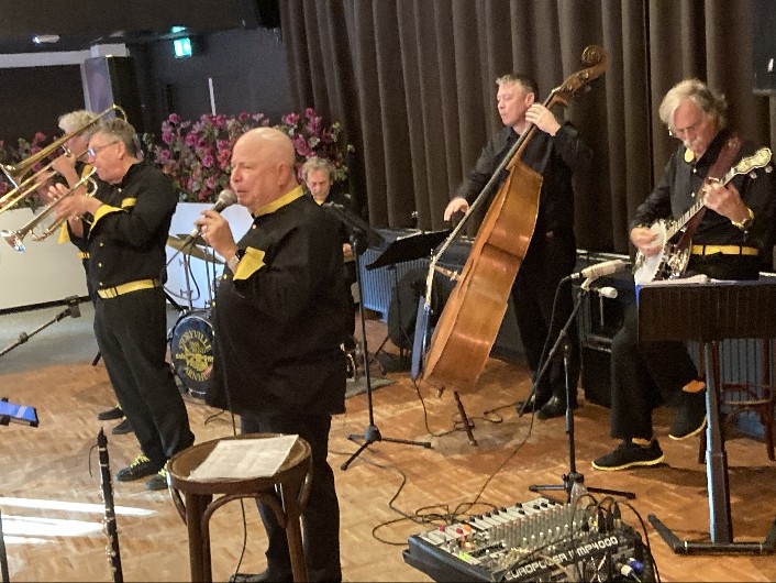 5 oktober ontvingen wij dit orkest dat in 2014 werd opgericht met de intentie om echte pure N.O. jazz te gaan spelen en het talrijke publiek werd niet teleur gesteld. Uitstekende musici die een pracht optreden verzorgden en dat was weer te merken op de dansvloer. Prachtige solo’s van de twee klarinettisten en een geweldige roffel van de uitstekende drummer